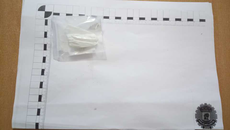 Acto seguido, le realizaron un cacheo, localizándole en el interior de la ropa un envoltorio plástico, que a su vez contenía varios envoltorios fraccionados, los cuales contenían una sustancia polvorienta de color blanco, lo que aparentaba ser cocaína.