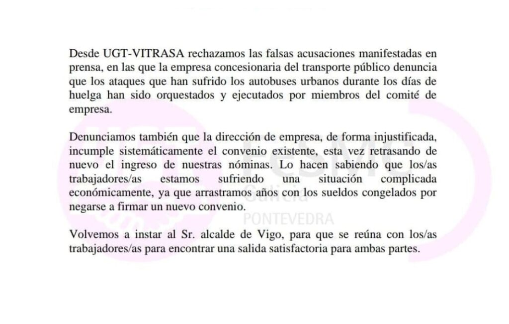 UGT tacha de falsas las acusaciones de Vitrasa pide Caballero que se reúna con los trabajadores